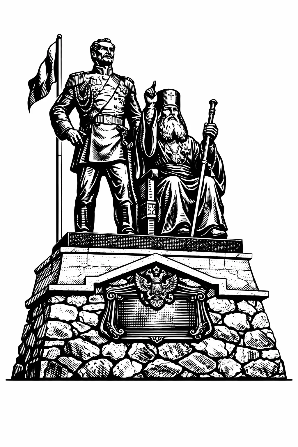Поэтому появление этих двух фигур в одном памятнике не случайно: они олицетворяют два взаимодополняющих начала — государственное и духовное.